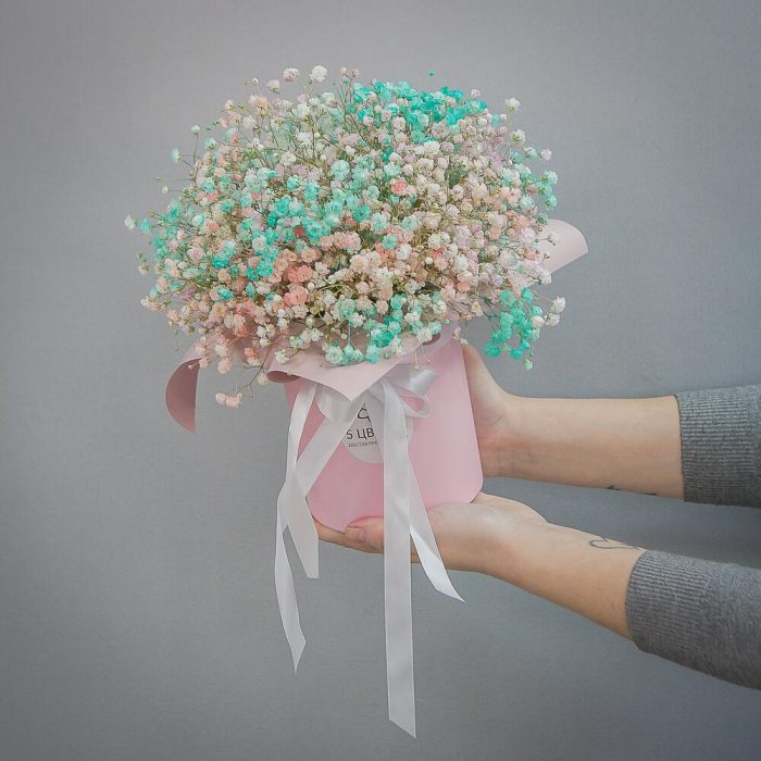 Гипсофила – 7 шт.Коробка шляпная – 1 шт.