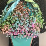 “Сиреневый туман” – композиция из гипсофилы в шляпной коробке