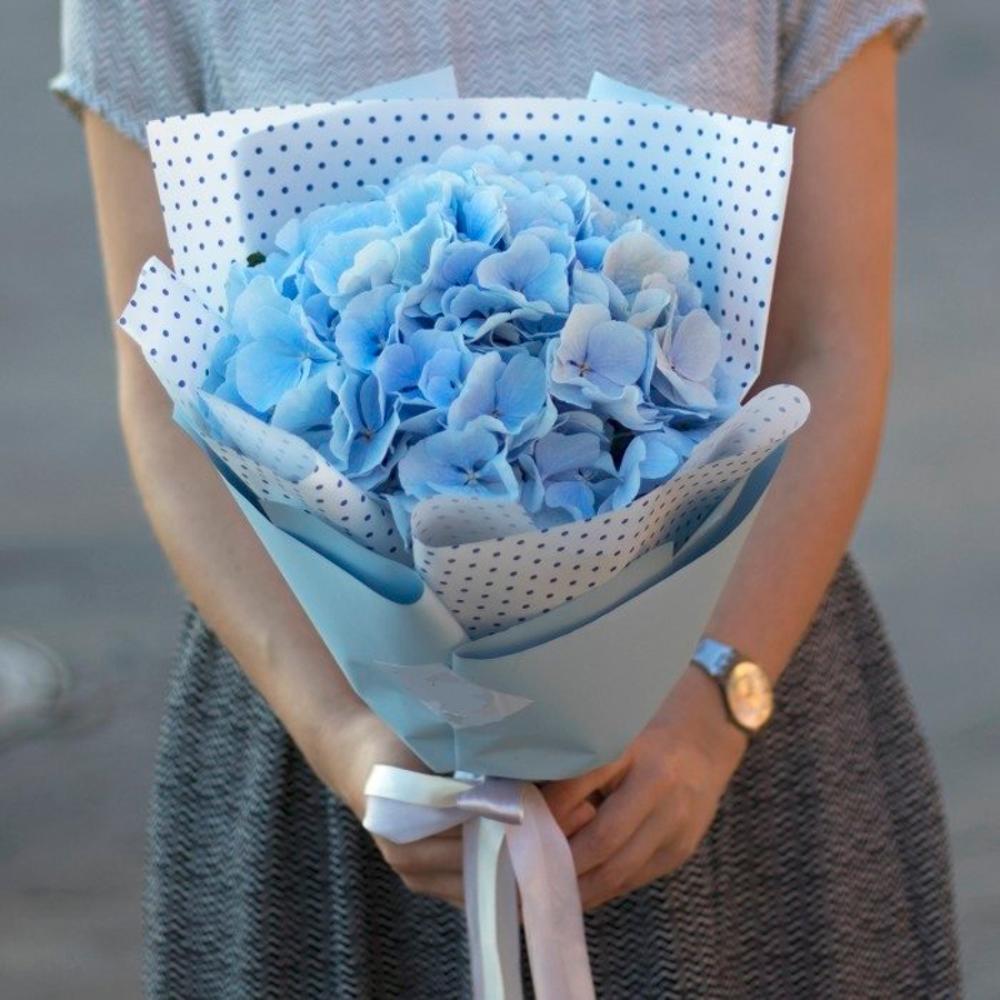 Гортензия голубая в дизайнерской упаковке "Жозефина"