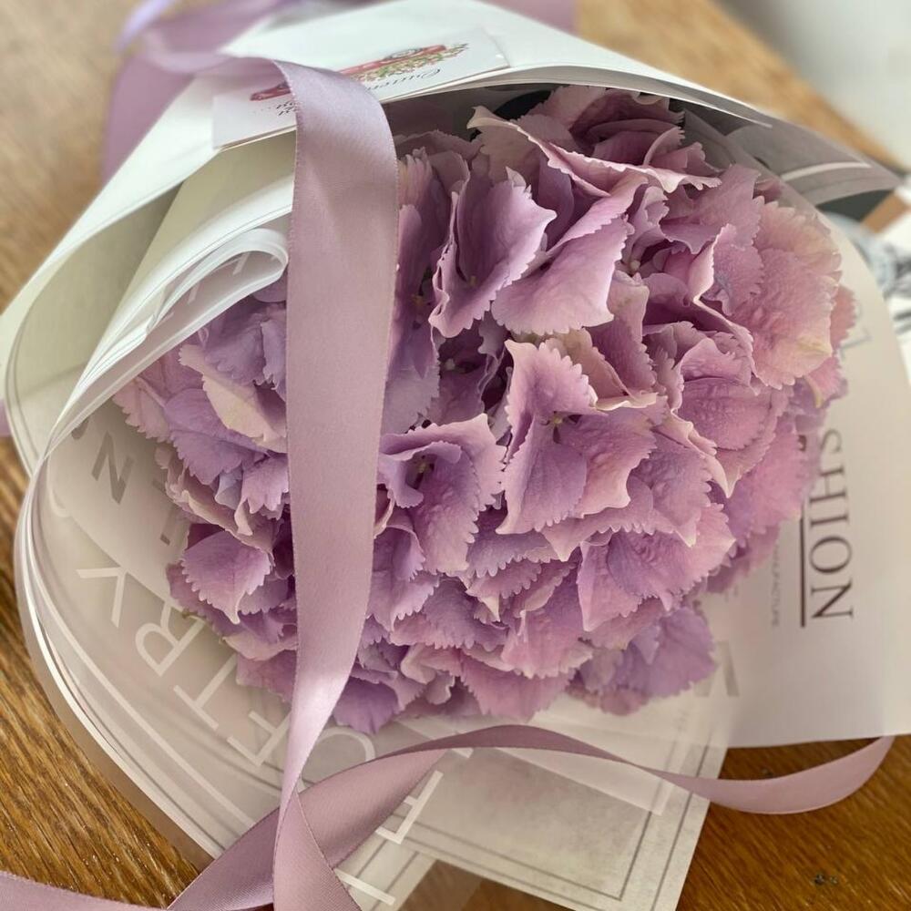 Гортензия – 1 шт.Лента – 1 шт.Упаковка дизайнерская – 2 шт.Топпер деревянный – 1 шт.