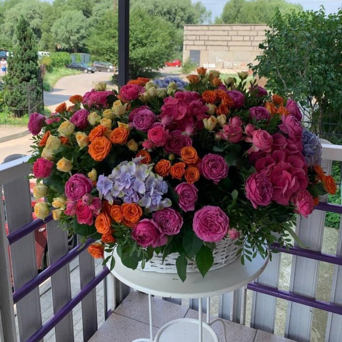 Метки: от 5000 руб, цветы в корзине