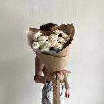 Букет из белых роз с необычным оформлением