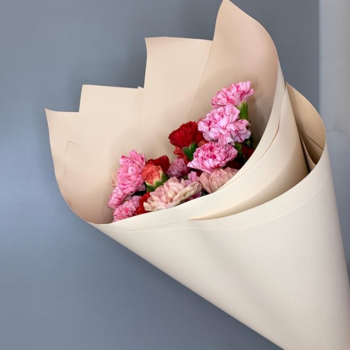 Лента атласная – 2 шт.Диантус кустовой – 11 шт.Дизайнерская упаковка – 2 шт.