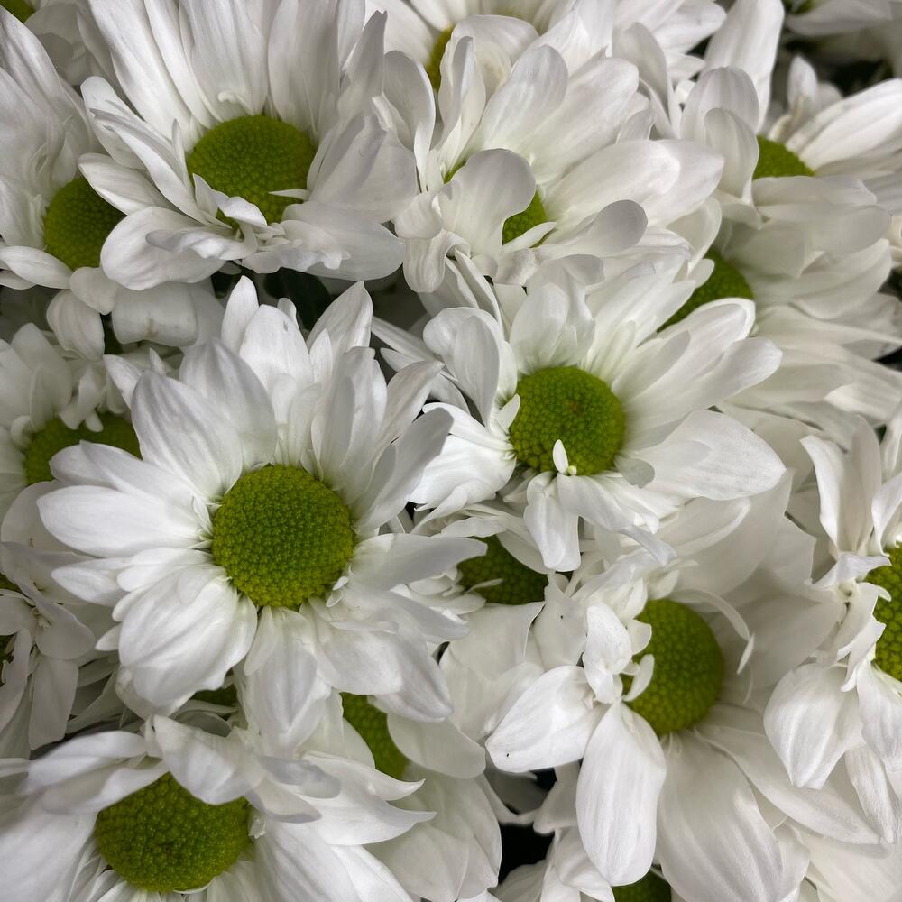 Хризантема кустовая – 15 шт.Дизайнерская упаковка – 1 шт.Лента атласная – 1 шт.