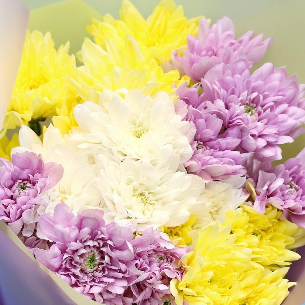 Букет из 5 кустовых хризантем Балтика микс в стильной упаковке