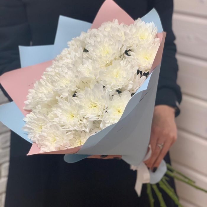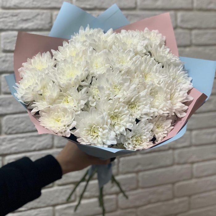 15 белых хризантем