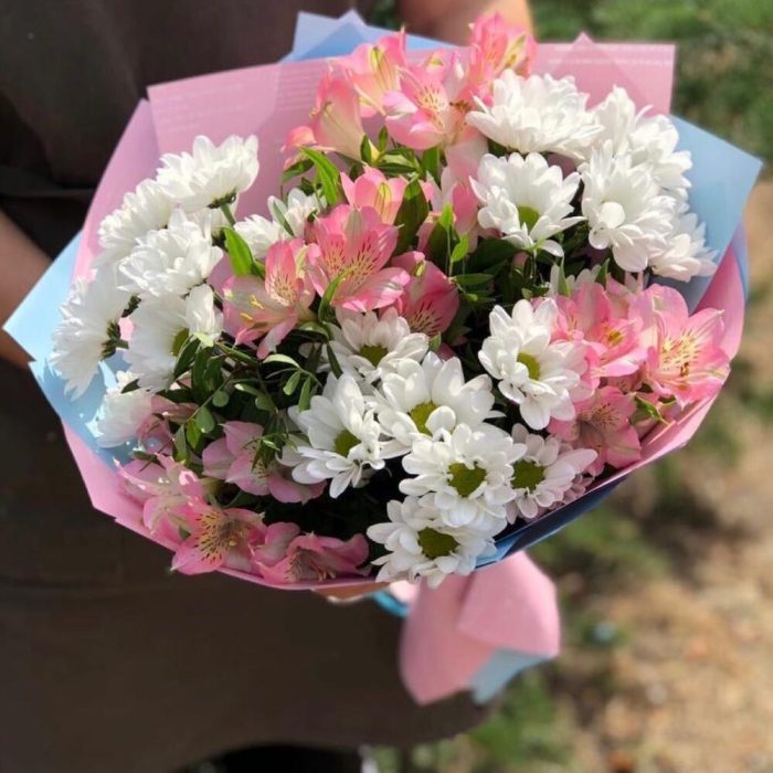 Альстромерия – 4 шт. Хризантема – 3 шт. Упаковка дизайнерская – 1 шт.