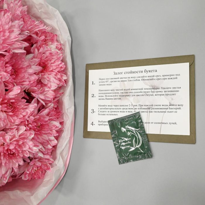 - Сроки возврата: Претензии по качеству букета принимаются в течение 24 часов с момента его получения.