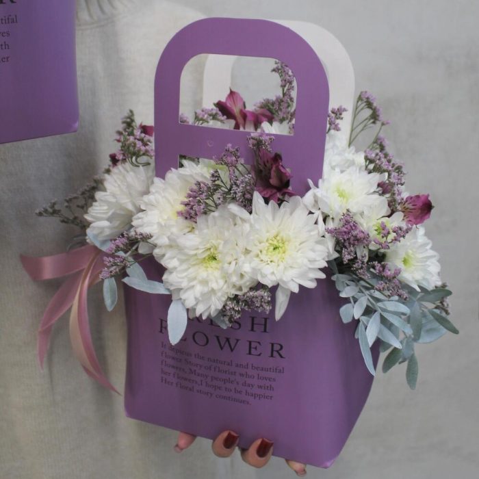 Альстромерия – 1 шт. Лимониум – 1 шт. Зелень – 1 шт. Хризантема Балтика – 3 шт.