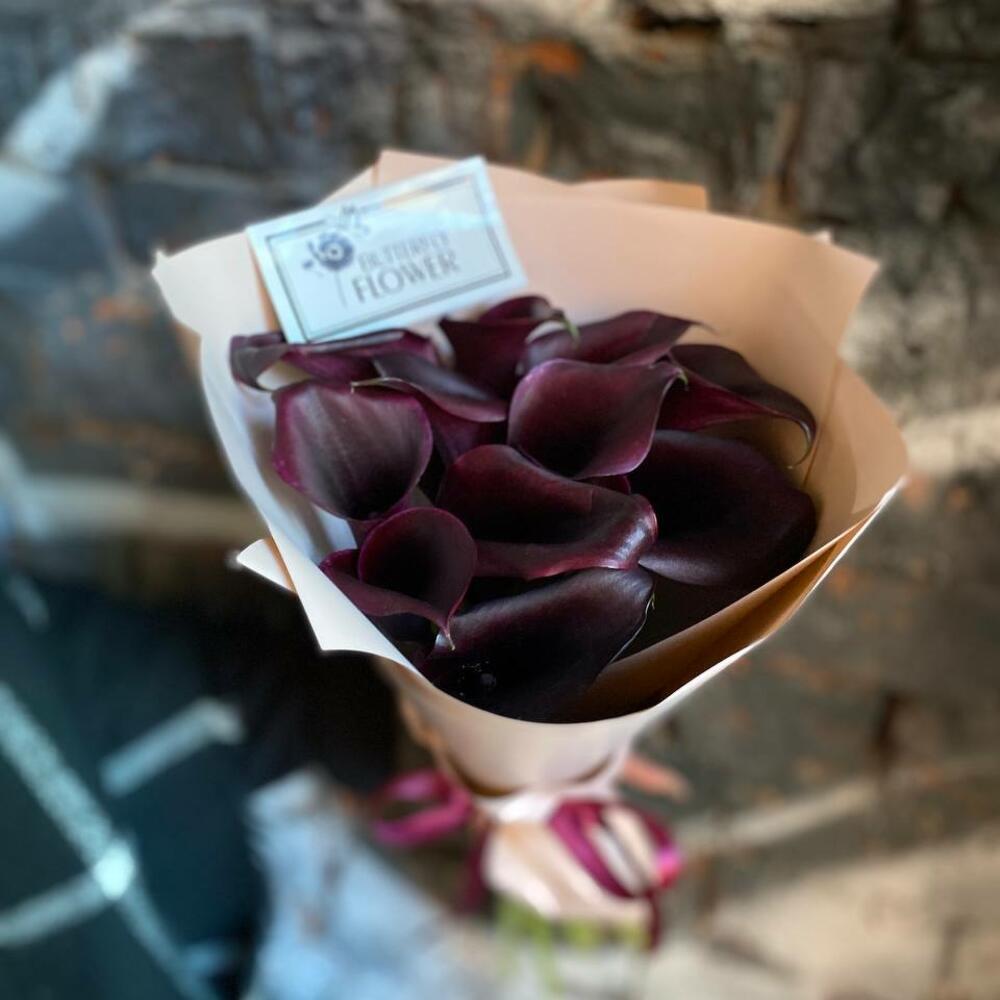 Букет из 11 черничных калл в упаковке “Лора”