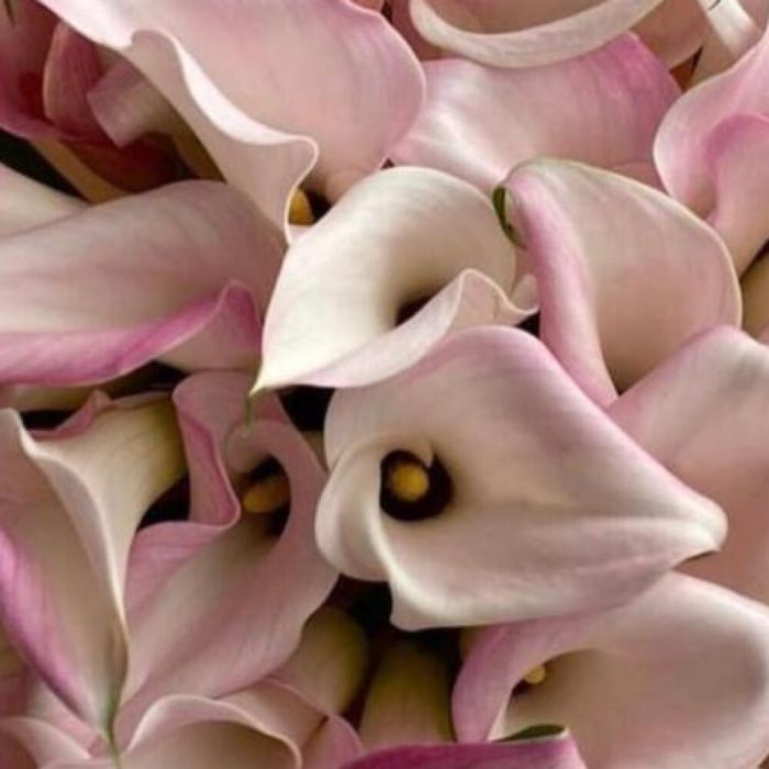 Калла розовая – 51 шт.Упаковка дизайнерская – 2 шт.Лента атласная – 2 шт.Открыточка с вашими пожеланиями – 1 шт.хорошее настроение – 100 шт.инструкция по уходу за цветами – 1 шт.коробка переноска – 1 шт.Кризал – 1 шт.