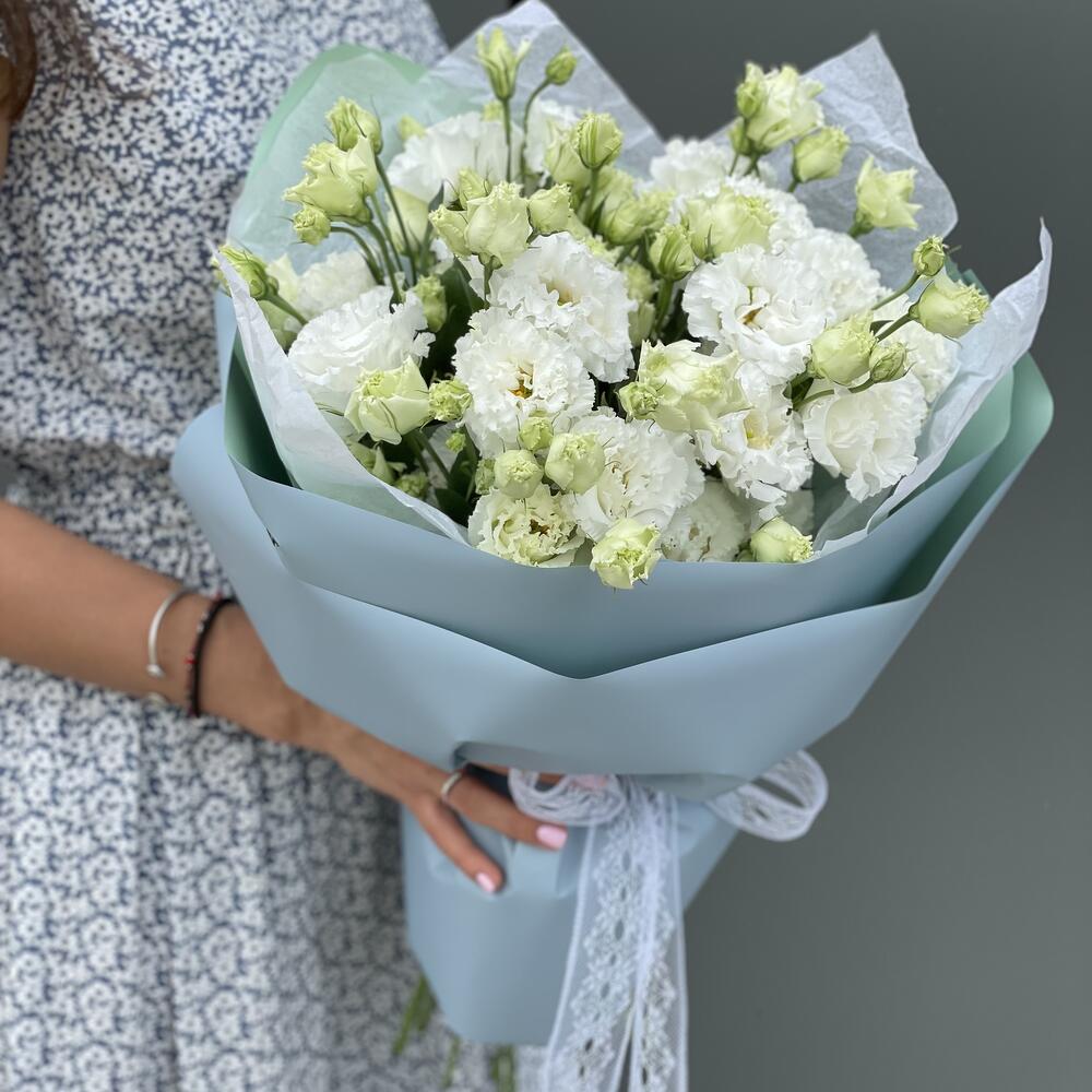 Букет из кружевной белоснежной эустомы в офрмлении!