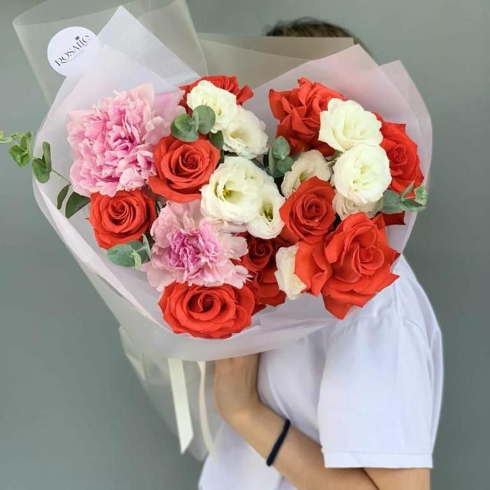 Гвоздики, Кустовые розы, Лизиантусы, Пионовидные розы, Розы