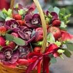 Корзина с цветами и фруктами в цвете марсала