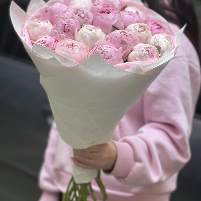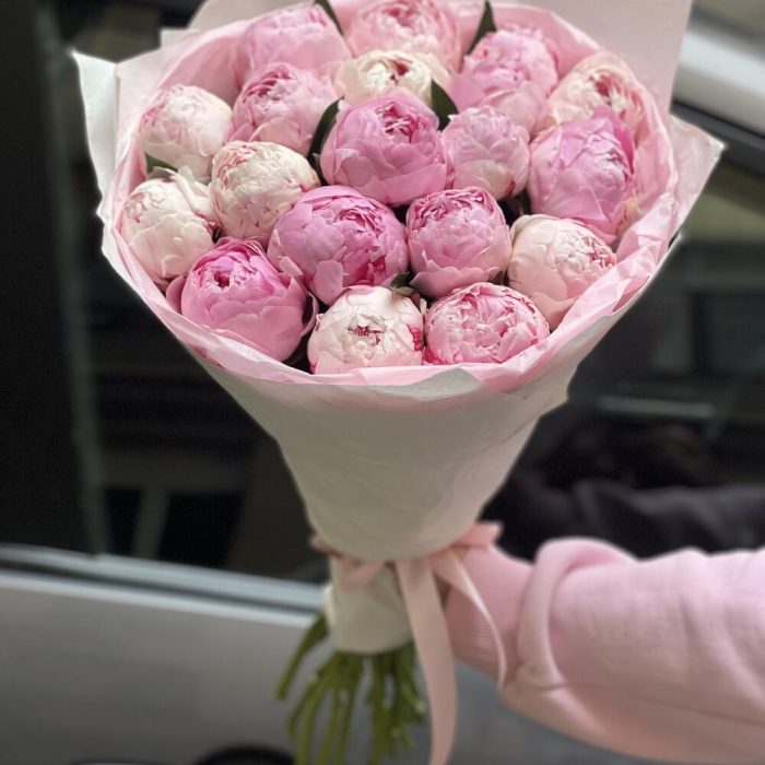Упаковка – 2 шт.Лента атласная – 1 шт.Пион розовый – 19 шт.