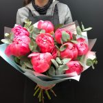 Пион – 9 шт.Эвкалипт – 5 шт.Упаковка дизайнерская – 1 шт.