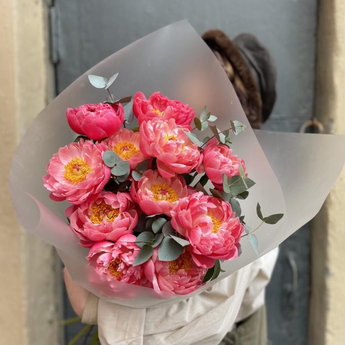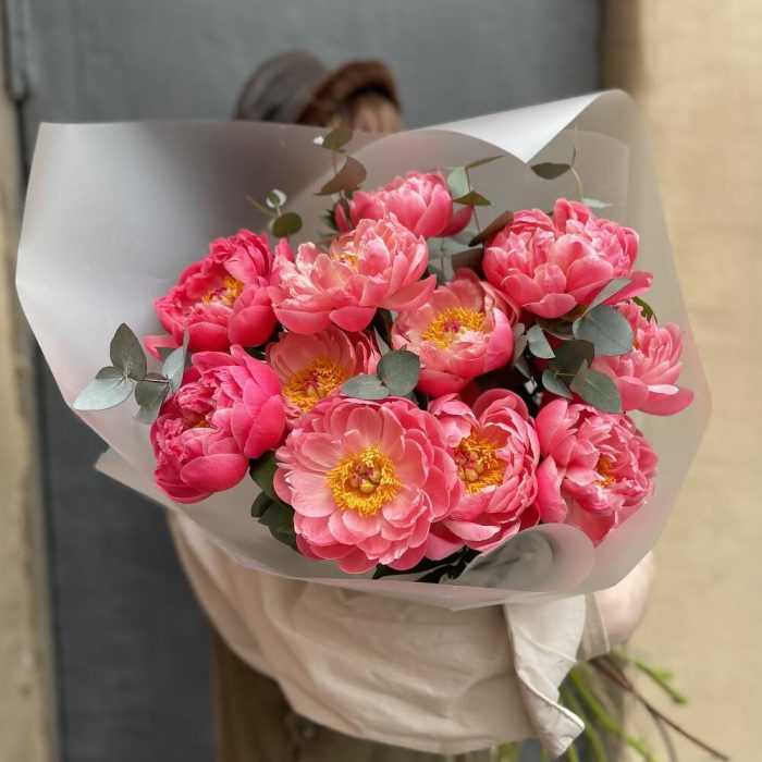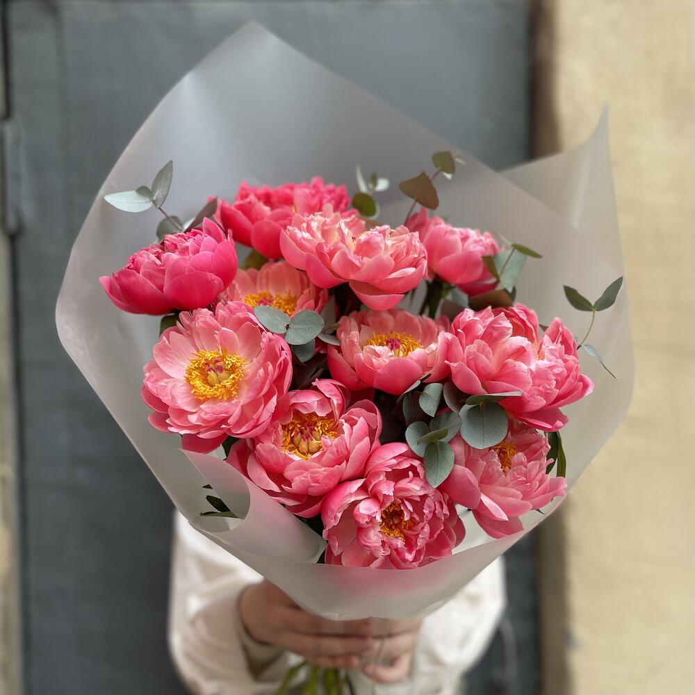 Пион – 11 шт.Эвкалипт – 2 шт.Упаковка дизайнерская – 1 шт.