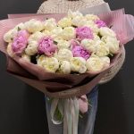 Букет из розовых пионов «Весенние пионы»(пионы,эвкалипт )