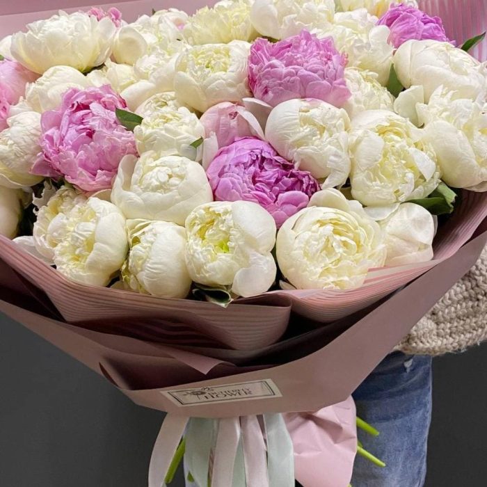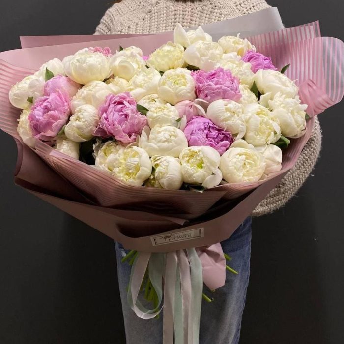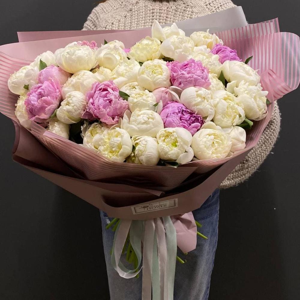 Букет из розовых пионов «Весенние пионы»(пионы,эвкалипт )