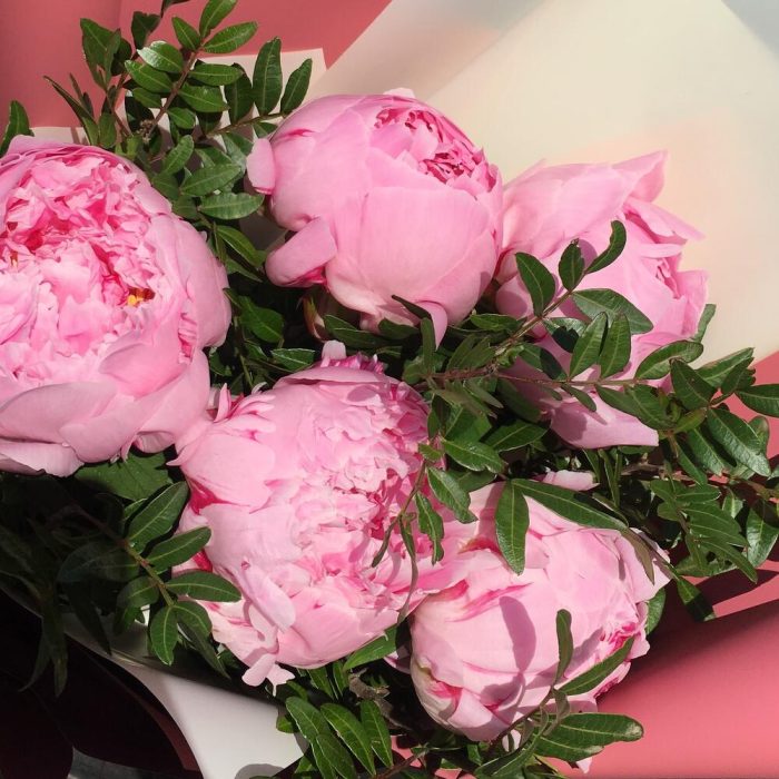 Пион – 5 шт.Писташ – 3 шт.Лента атласная – 1 шт.Упаковка дизайнерская – 3 шт.