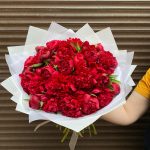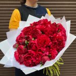 Букет из красных пион 35 штук (моно 078)