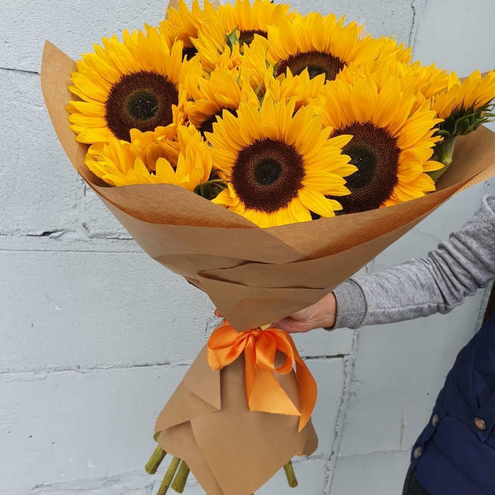 Букет из 11 подсолнухов в крафте
