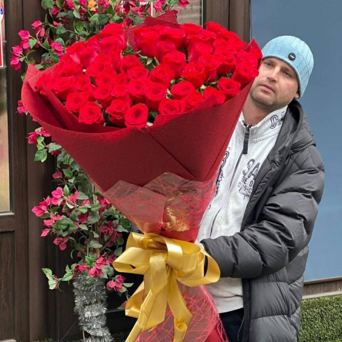 Шикарнейший букет из 55 метровых роз сорта Freedom один из хитов наших продаж. Спешите порадовать своих близких ❤️