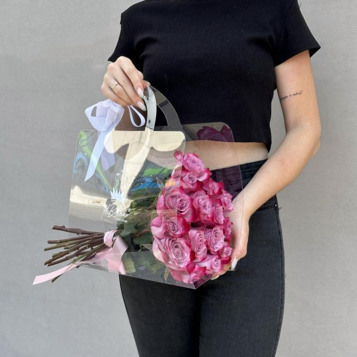 Букет из роз в сумке – изысканная композиция в удобной и стильной упаковке.