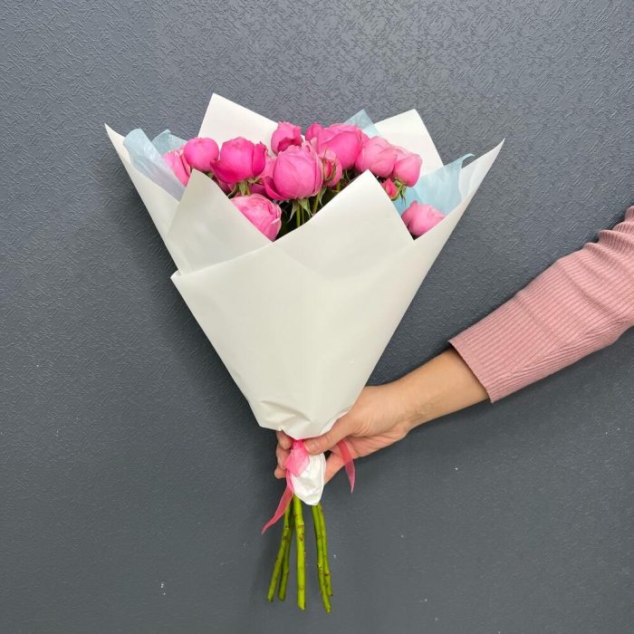 Тишью – 2 шт.Роза пионовидная кустовая – 5 шт.Пленка матовая – 2 шт.