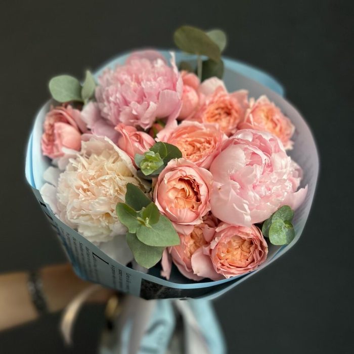 Букет с пионами и пионовидной розой
