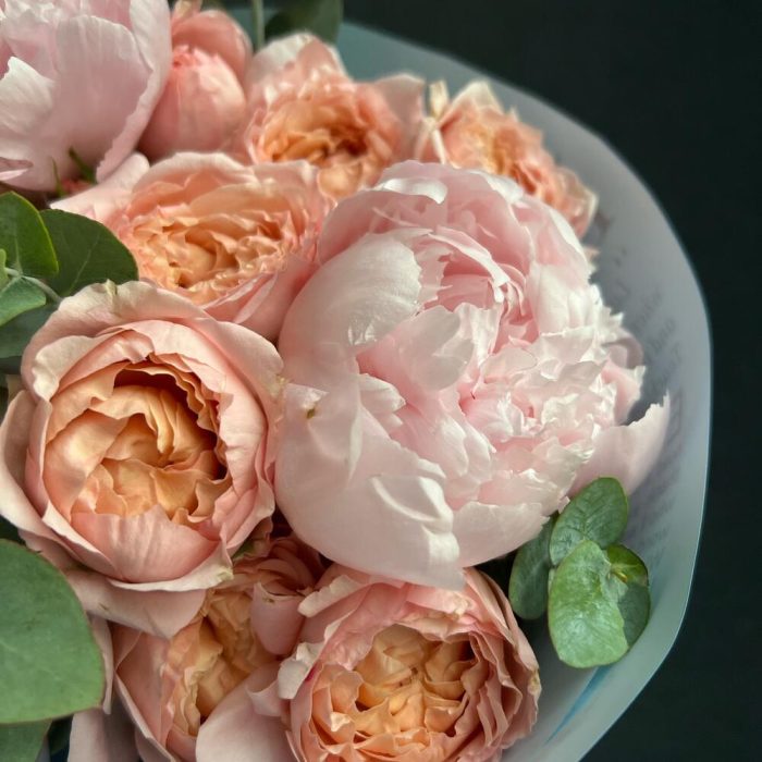 Букет с пионами и эвкалиптом