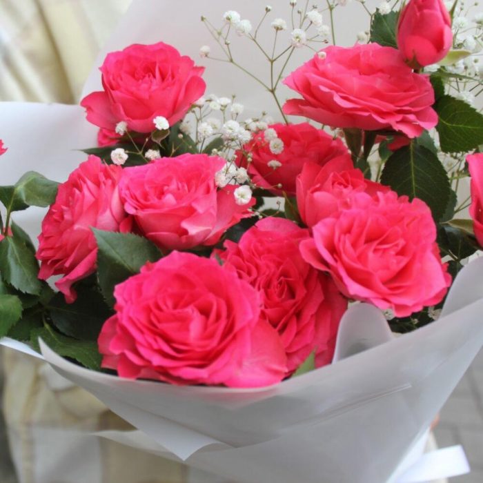 Упаковка дизайнерская – 1 шт.роза кустовая премиум – 3 шт.веточка гипсофилы – 1 шт.