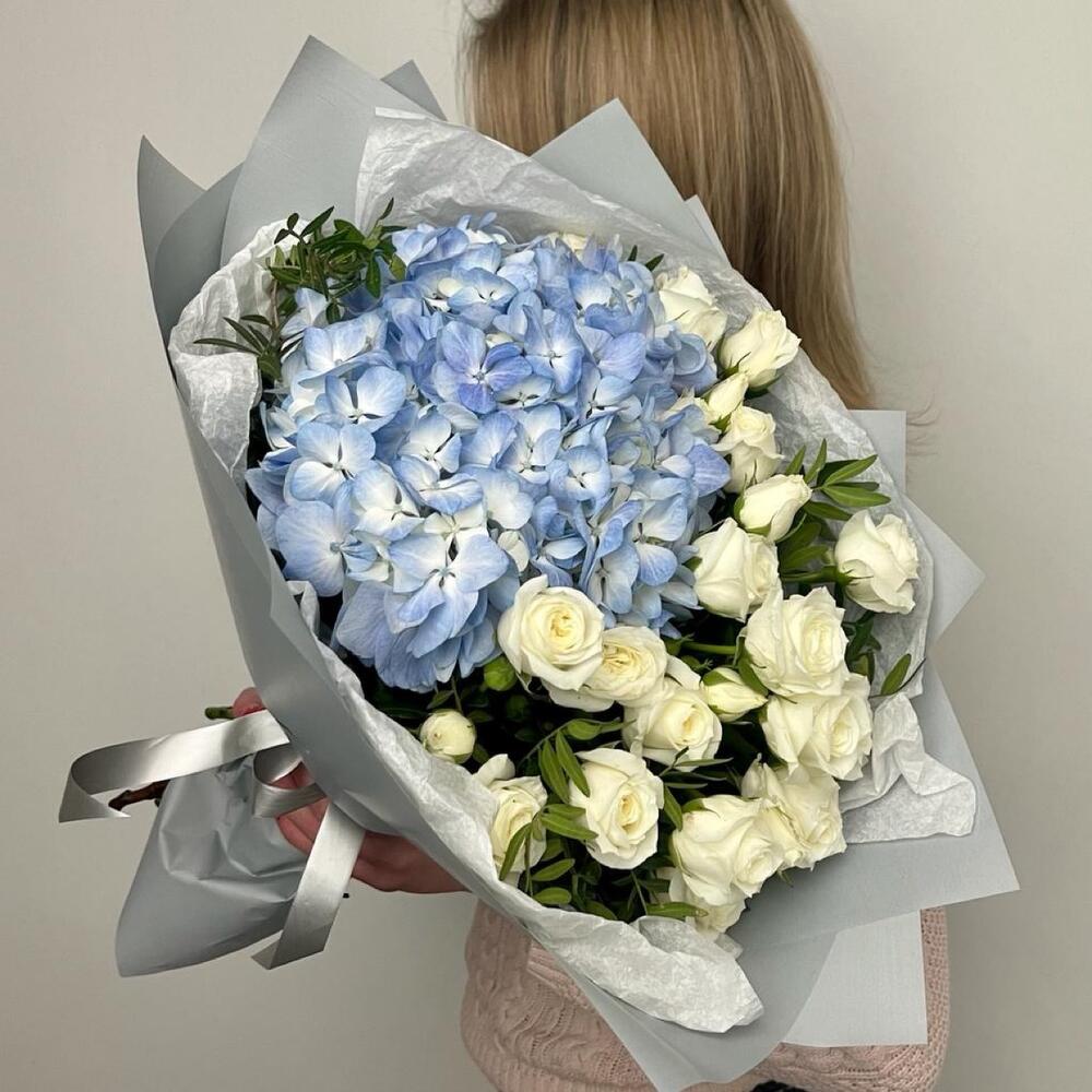 “Эвкалиптическая роскошь” гортензия и пионовидная кустовая роза