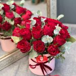 Роза одноголовая – 19 шт.Шляпная коробка – 1 шт.Оазис флористический – 1 шт.Эвкалипт – 1 шт.