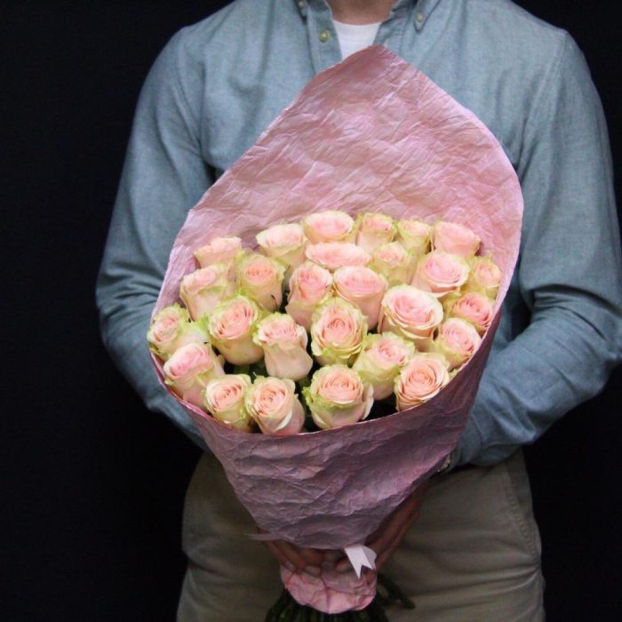 Роза Эквадор Премиум – 25 шт.Крафт упаковка – 1 шт.Лента атласная – 2 шт.
