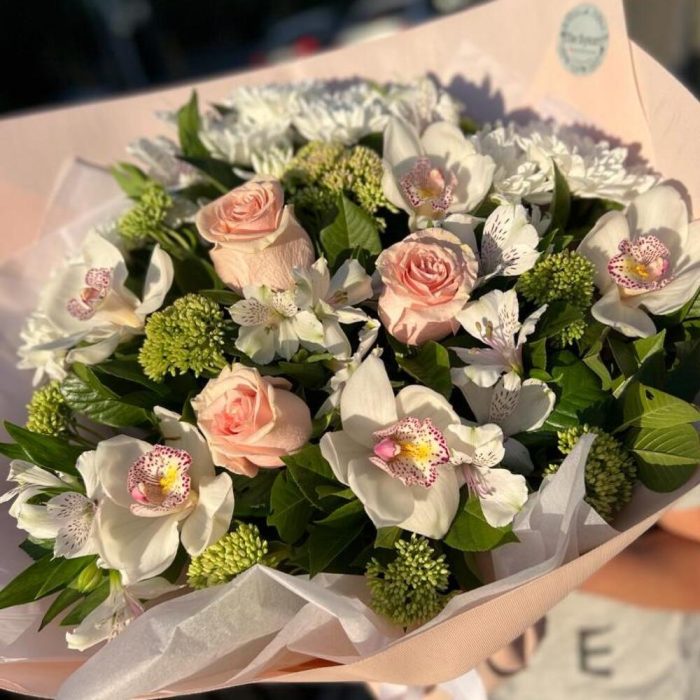 Альстромерии, Кустовые розы, Лизиантусы, Пионовидные розы, Розы, Ромашки