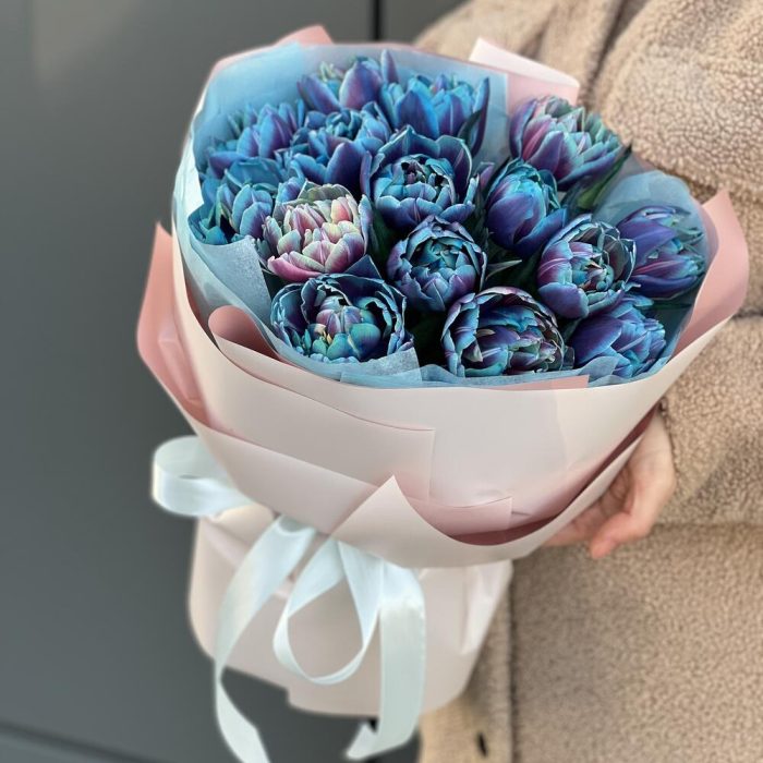 Букет из 15 пионовидных тюльпанов в оформлении!