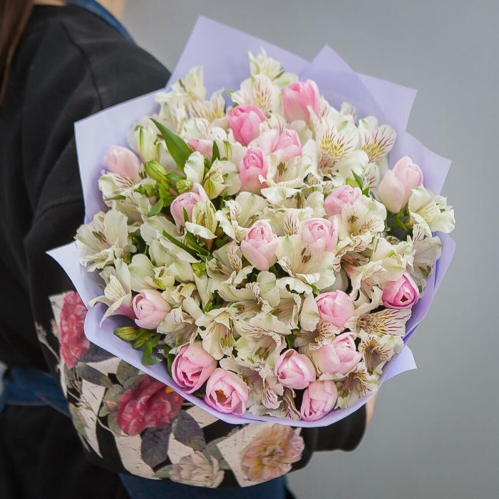Тюльпан розовый – 20 шт.Альстромерия – 15 шт.