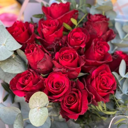 Букет Париж из красных роз и эвкалипта